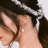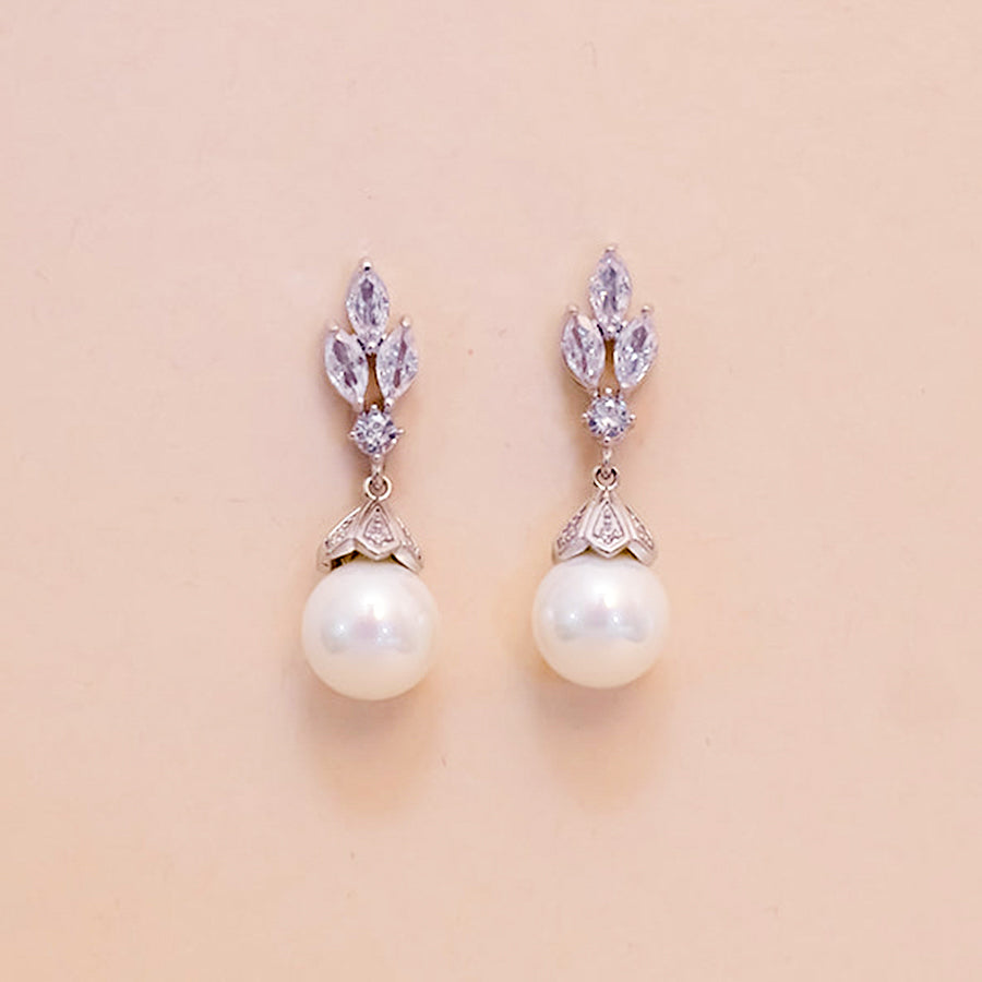 Pendientes elegantes estilo colgante, a base de cristal zirconia y perla.