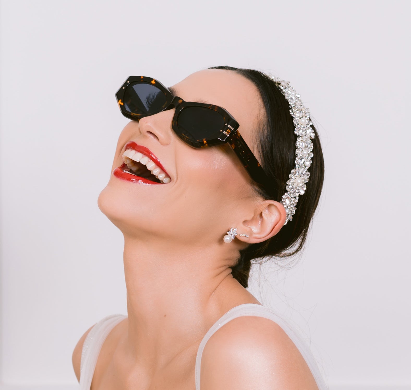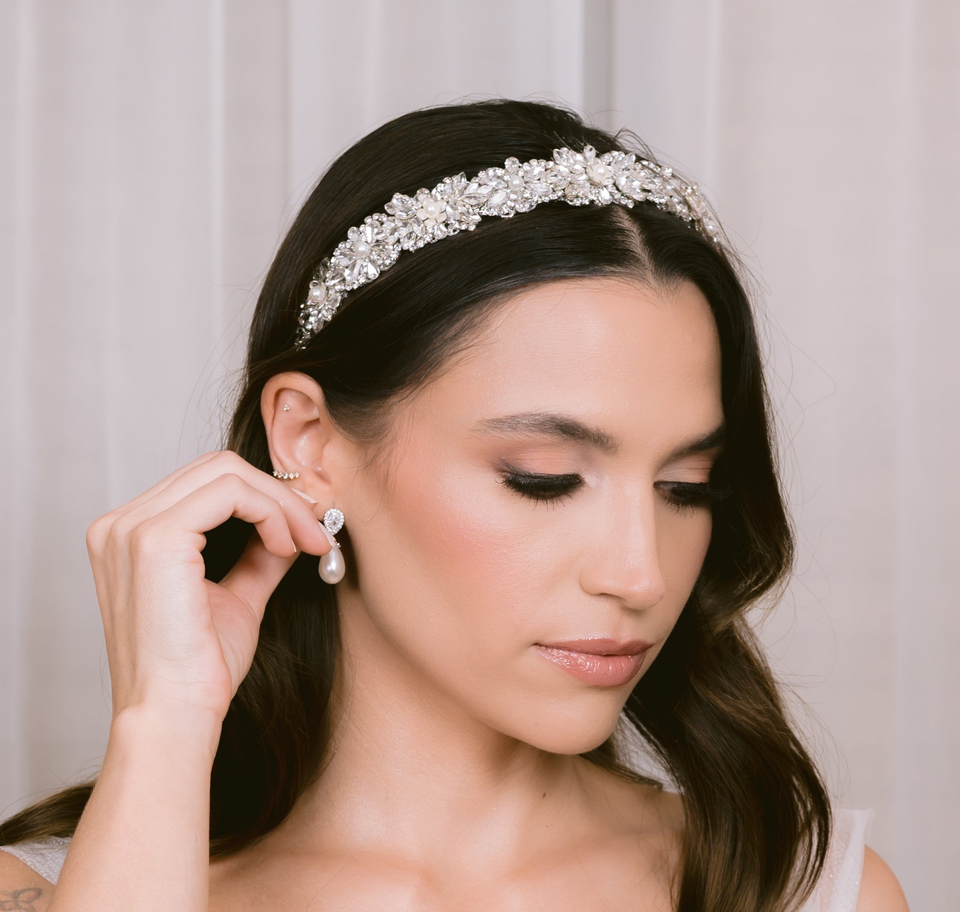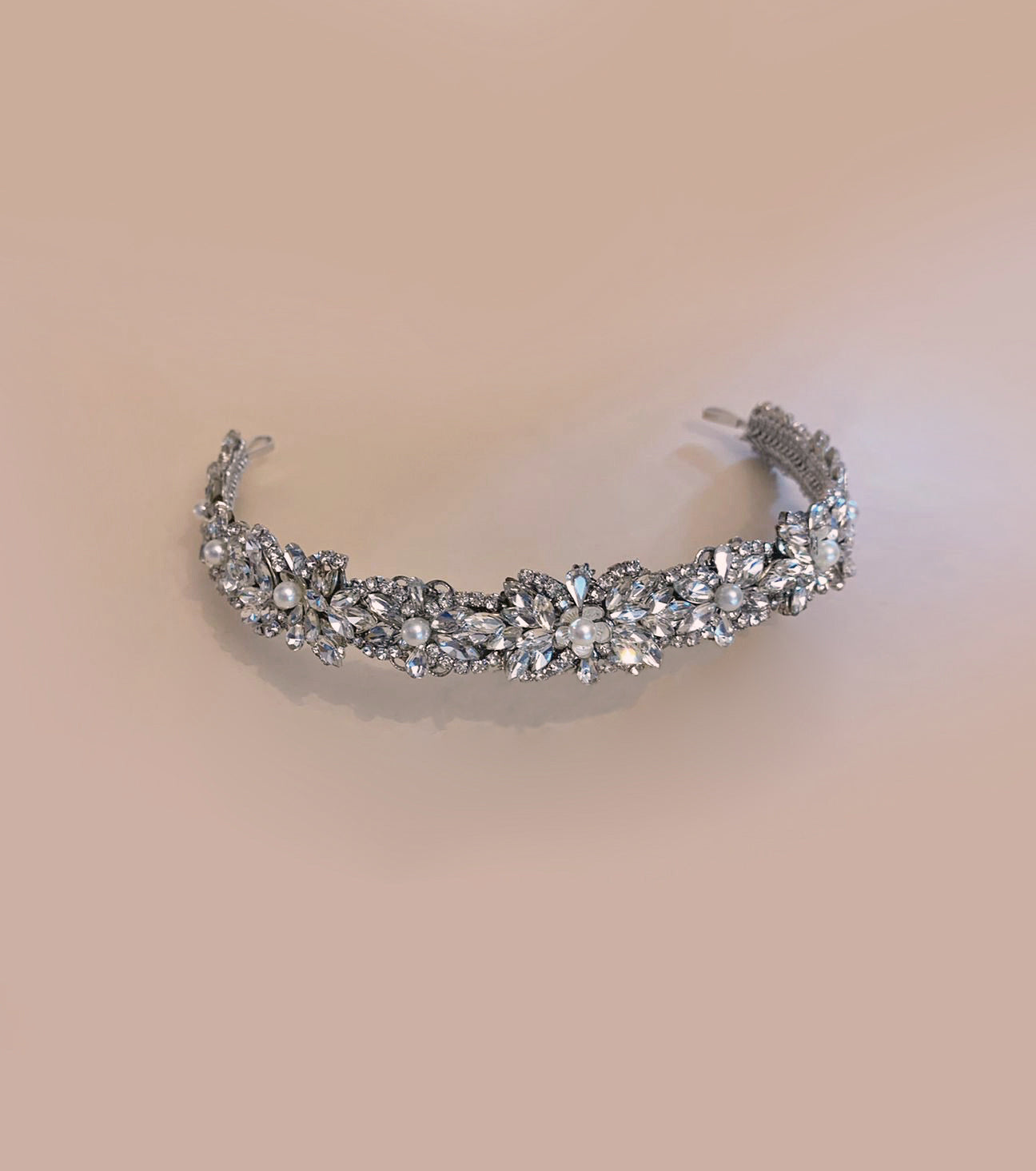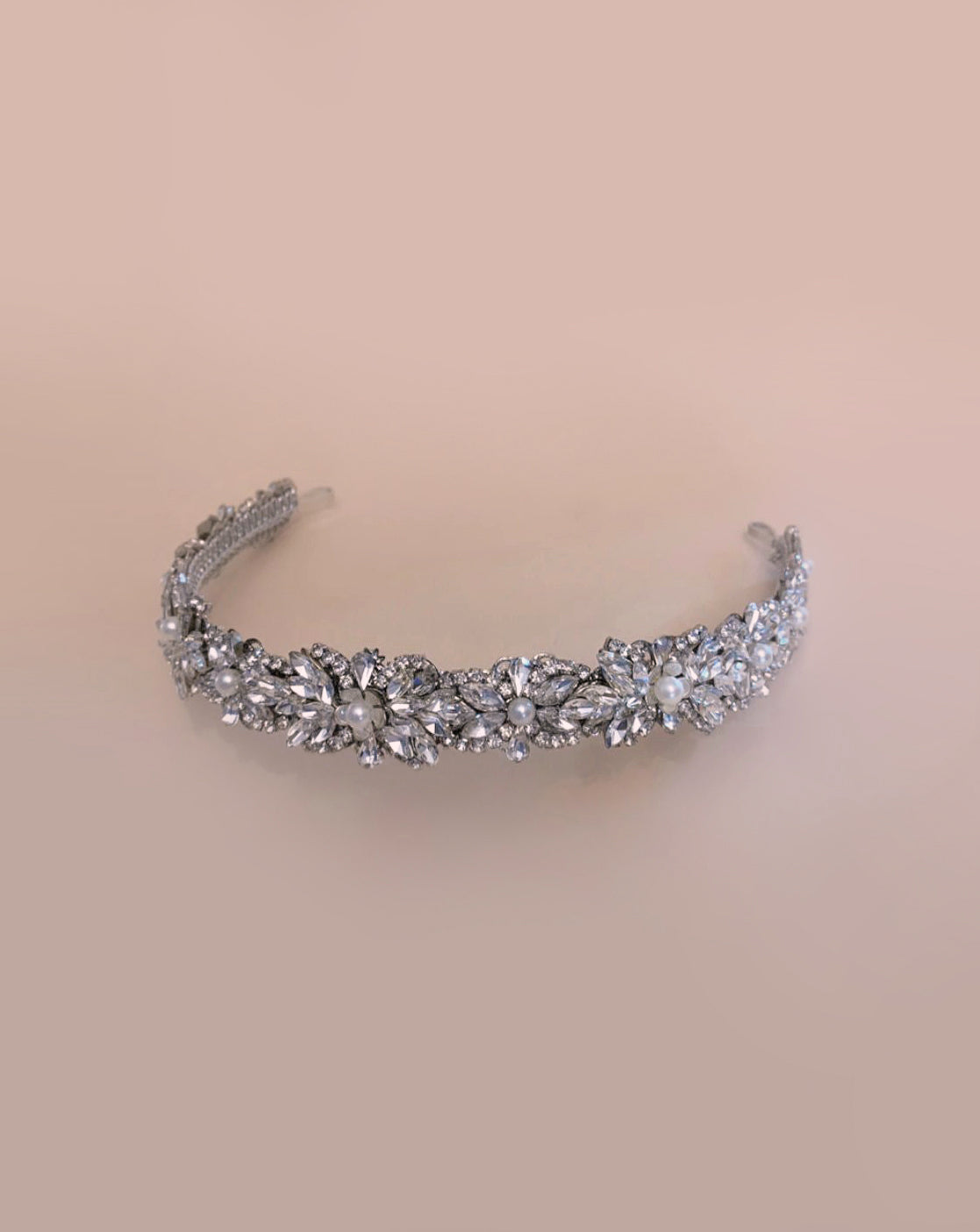 Diadema única y hecha a mano por Ana Rebeca, adornada principalmente con cristal Swarovski y perlas. Tonos a elegir.